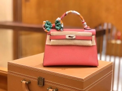 Hermès(爱马仕)Mini kelly 迷你凯莉 唇膏粉 掌纹小牛皮 全手工缝制 臻品级别 银扣 19cm 现货